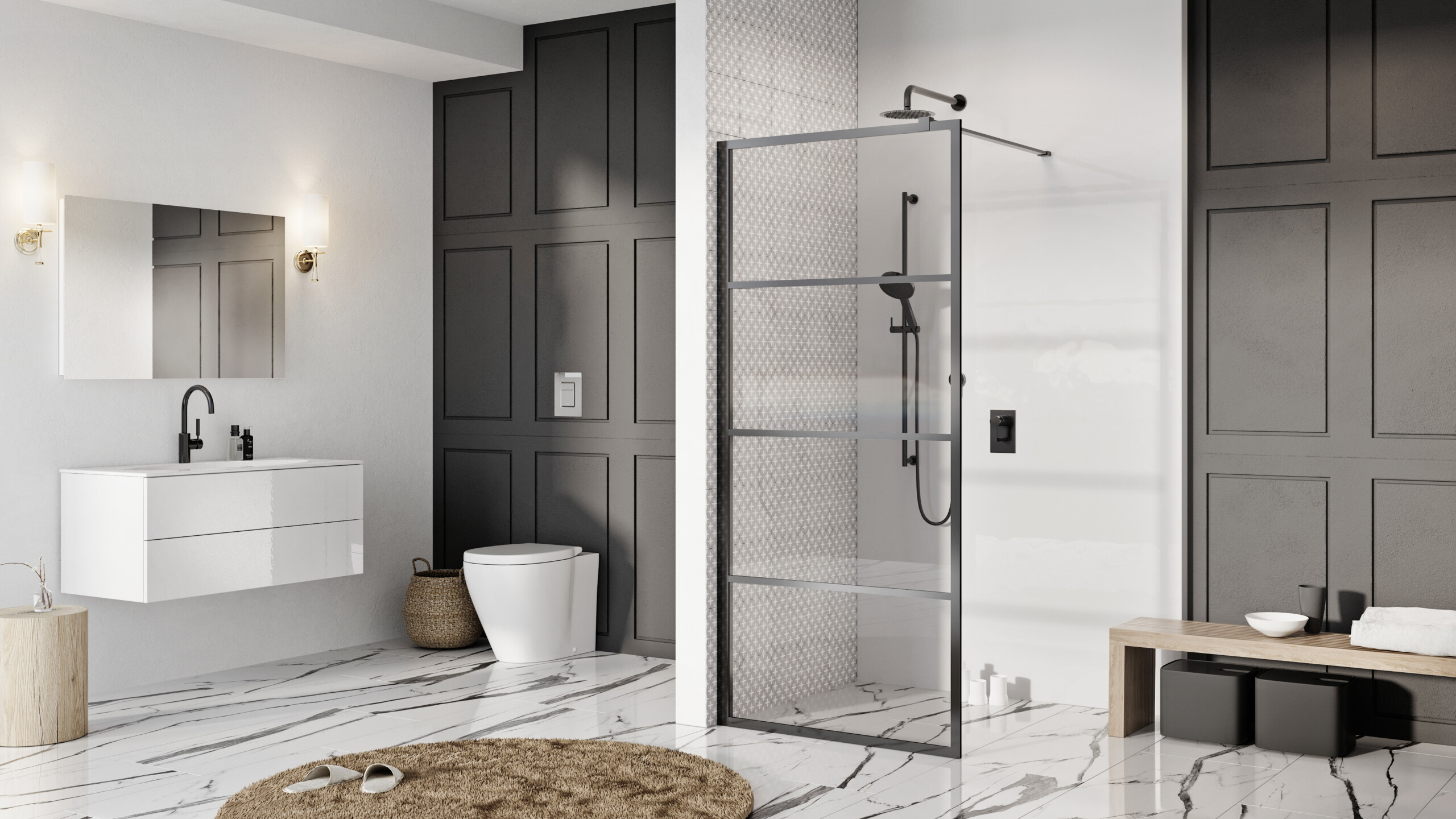 Framed shower solutions add bold lines and a modern accent to the bathroom. Available in black or matte silver profiles, they suit contemporary and industrial-style interiors. The range includes shower walls, doors, and enclosures made from tempered safety glass and durable aluminum frames.