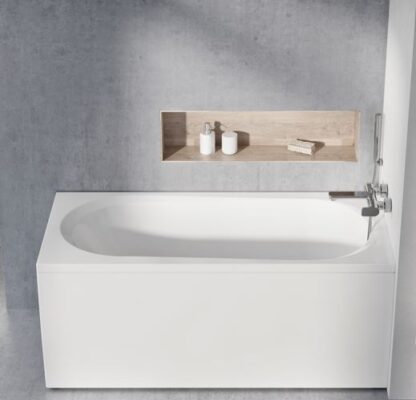 The Forma 190 is a long and elegant classic rectangular acrylic bath that creates a cosy atmosphere in the bathroom. The bath, with optimal depth and good capacity, ensures maximum relaxation, while the high-quality acrylic material and sturdy construction guarantee durability for years. An ideal choice if you want something distinctive and enjoyable for your bathroom. We offer screwless PVC-coated MDF Panel+ panels for the bath.