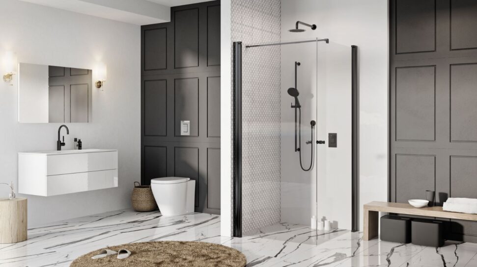 Mode is a universal 200 cm high shower enclosure with two pivot doors (PSS2N). The solution requires choosing two doors that can be combined in different sizes. In addition, Mode doors can also be combined with a Fold shower door, offering flexibility and functionality for any bathroom. The enclosure is available both in standard widths and as a custom-made solution to fit your bathroom perfectly.