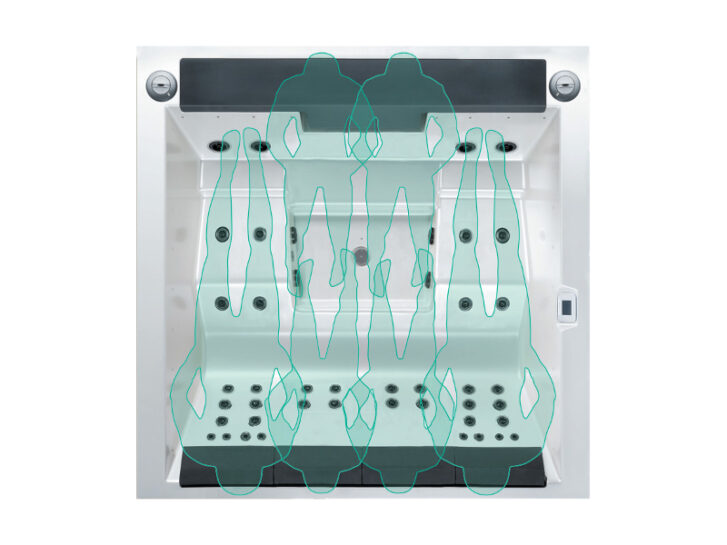 The Lounge 4 hot tub is designed to accommodate up to six people, featuring two lounge-style recliners and four additional seats. It’s the perfect way to enjoy hydrotherapy and quality time together – whether on your terrace or in the garden.