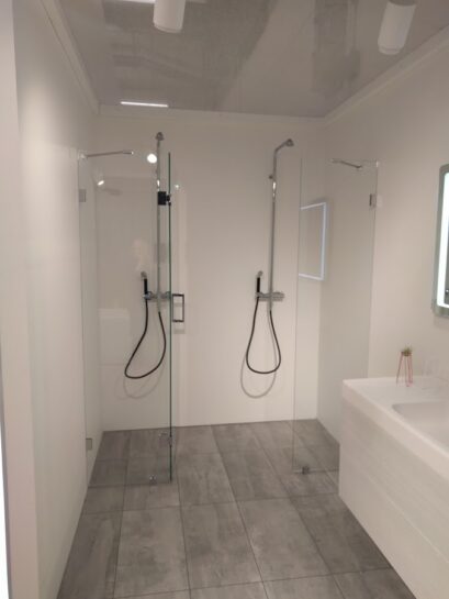 The Concept series shower wall consists of two 8 mm tempered safety glass panels and high-quality hinge systems. Available in various glass types and finishes – options include clear, grey, Matelux silk matte, and exclusive Crystal Vision glass. The product is manufactured to the client’s exact measurements. With over 30 years of experience, CE marking, and compliance with European safety standard EN 14428, it ensures reliability and longevity.