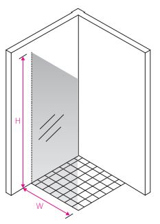 The Form shower enclosure consists of an opening shower door (PSS1N) and a fixed wall (FSS1N), offering clean lines and flexible installation options both as a niche and corner solution. The fixed glass wall is secured to the floor with a U-profile, with stability ensured by the wall profile and sturdy crossbar (installation height 203 cm). The shower enclosure is available in standard and custom dimensions, including Form Solo and Form Duo solutions for niche doors.