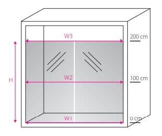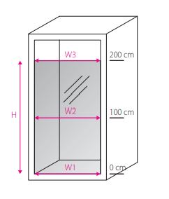- Fixed wall FSS1N – height 200 cm (crossbar 203 cm), 6 mm tempered glass (clear or grey), aluminium profiles with anodised, white, or black finish. Includes upper crossbar, magnetic seal, and fixing accessories.