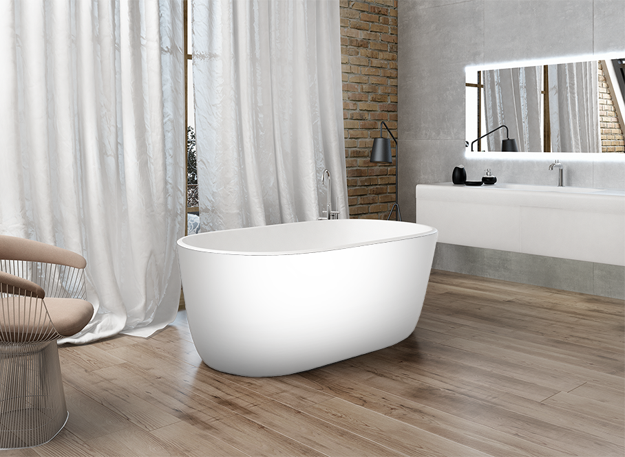 An elegant and durable bath made from Balteco’s Xonyx™ solid surface composite material. The Xonyx™ bath features a clean, monolithic design – the body and outer panel are cast as a single piece. A strong galvanized steel frame with adjustable legs ensures stable support and easy installation. The bath is equipped with an integrated overflow and a push-open waste cover finished in matching Xonyx™ material. As an optional feature, the outer panel can be ordered in any custom RAL colour.