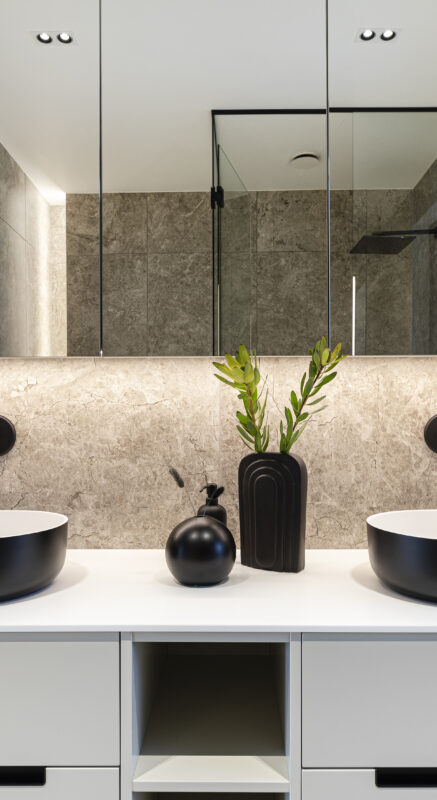 These two bathrooms showcase how individuality and cohesive design can go hand in hand – creating unique spatial experiences tailored for each family member.