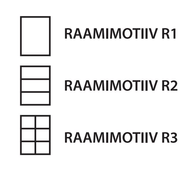 Saadaval kolme erineva raamimotiiviga: R1, R2 ja R3.