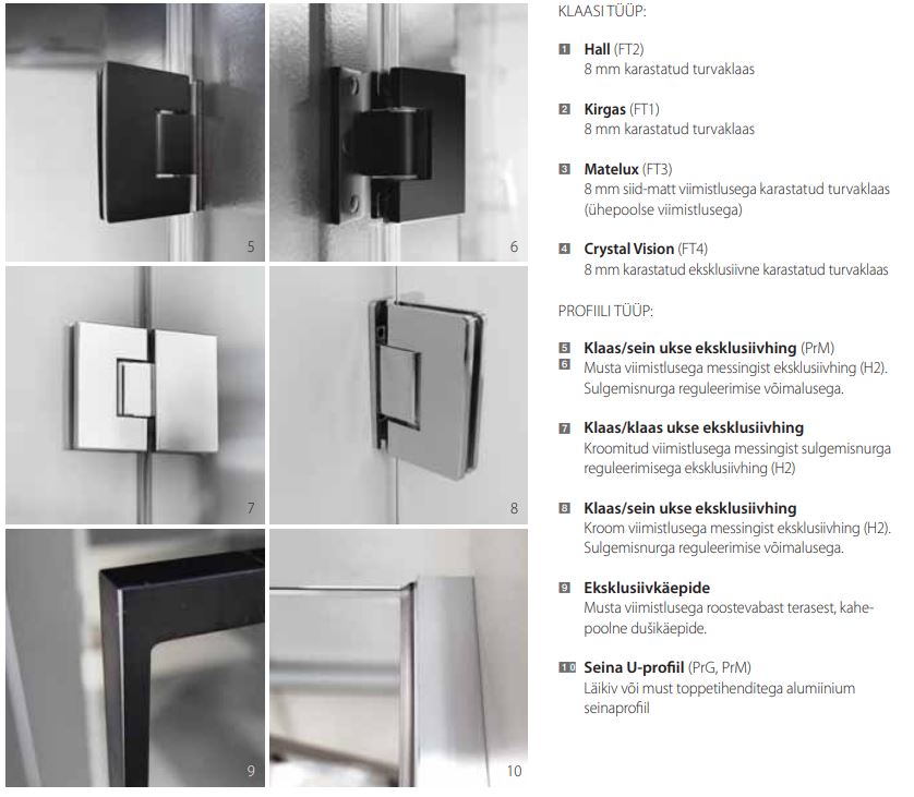 Pakume laia valikut vastupidavaid ja funktsionaalseid dušinurki, dušiseinu, dušiuksi ning kombineeritud lahendusi. Kõik tooted on valmistatud kvaliteetsetest materjalidest, testitud ja vastavad Euroopa ohutusstandardile EN 14428 (CE-märgistus). Valikus on Concept-seeria dušitooted 8 mm klaaside ja hingede süsteemiga ning Project-seeria lahendused 6 mm klaaside ja profiilidega. Lisaks pakume erinevaid viimistlusi ja klaasitüüpe ning võimalust tellida toode erimõõdus – täpselt sinu vannituppa sobiv.