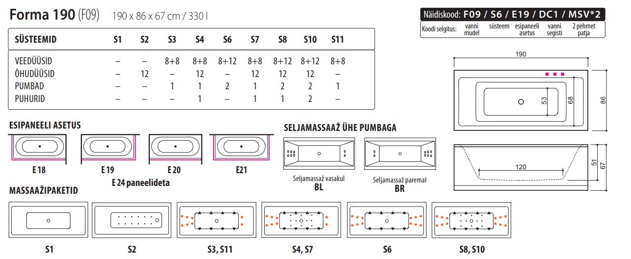 Forma 190 on pikk ja elegantne klassikaline sirgjooneline akrüülvann, mis loob vannituppa õdusa atmosfääri. Vanni optimaalse sügavusega ja hea mahutavusega vann tagab maksimaalse lõõgastuse, samas kui kvaliteetne akrüülmaterjal ning tugev konstruktsioon tagavad vastupidavuse aastateks. Ideaalne valik, kui soovid oma vannituppa midagi eristuvat ja nauditavat. Vannile pakume PVC-kiletatud MDF kruvideta Panel+ paneele.