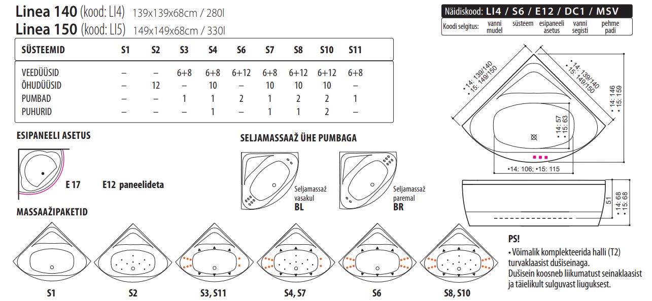 Linea on kahes erinevas mõõdus kauni vormiga nurgavann, mis loob vannituppa õdusa atmosfääri. Vanni sügav ja sümmeetriline kuju tagab maksimaalse lõõgastuse, samas kui kvaliteetne akrüülmaterjal ning tugev konstruktsioon tagavad vastupidavuse aastateks. Ideaalne valik, kui soovid oma vannituppa midagi eristuvat ja nauditavat. Valikus ilma esipaneelita versioon või Panel+ akrüülpaneel magnetkinnitustega.