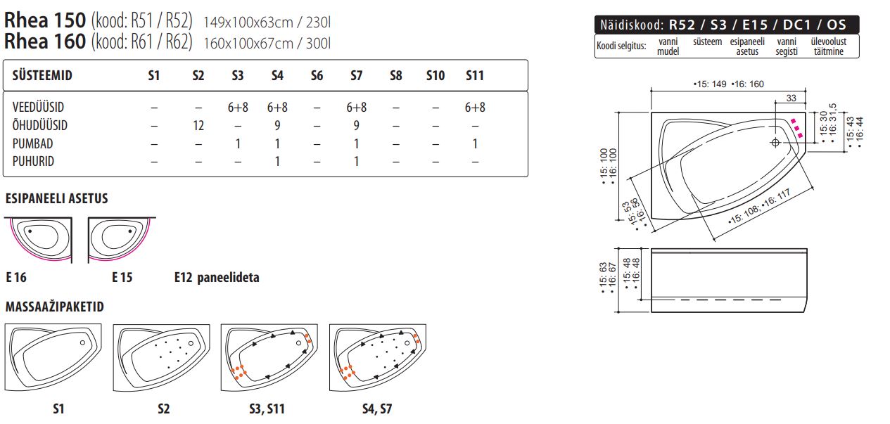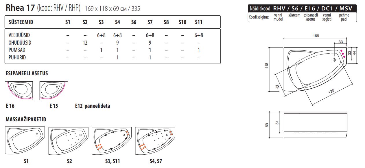 Rhea on kolmes erinevas mõõdus kauni vormiga tilgakujuline vann, mis loob vannituppa õdusa atmosfääri. Vanni sügav ja sümmeetriline kuju tagab maksimaalse lõõgastuse, samas kui kvaliteetne akrüülmaterjal ning tugev konstruktsioon tagavad vastupidavuse aastateks. Ideaalne valik, kui soovid oma vannituppa midagi eristuvat ja nauditavat. Valikus ilma esipaneelita versioon või Panel+ akrüülpaneel magnetkinnitustega.