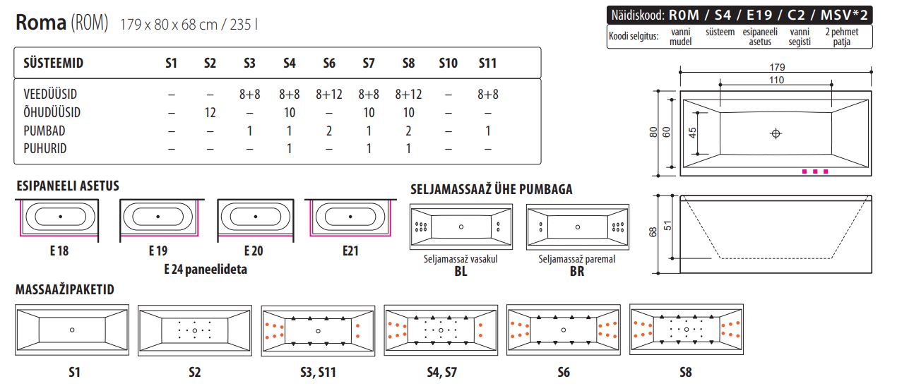 Eestis disainitud ja toodetud Balteco vannid on valmistatud Prantsuse Altuglas kõrgekvaliteedilisest akrüülist ning tugevdatud innovaatilise Polycore™ tehnoloogiaga. Tugev alumiiniumraam, kruvivabad magnetkinnitustega paneelid ning optimaalne sügavus loovad vastupidava ja mugava vanni. Vaiksed massaažipuhurid, töökindlad veepumbad ja ohutust tagavad veetaseme andurid tagavad lõõgastava ja turvalise vannielamuse. Kõik vannid läbivad põhjaliku testimise ja vastavad Euroopa kvaliteedistandarditele. Allpool leiad teavet selle vanni massaažisüsteemi kohta.